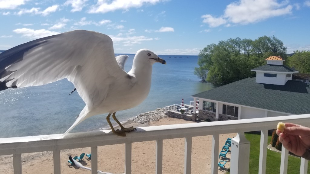 For this three-day weekend getaway, we decided to do two activities, visit an island and see one of the highest waterfalls. We chose to stay in Saint Ignace, MI, since in this area, many people remain to catch the ferries to Mackinac Island. When it comes to this area, you will have many options for hotels where to stay. We opted for Breakers Resort Lakeside as it was a hotel that had rooms with a lake view. Many seagull roam around the hotels, which can be fun if you are into feeding them, and kids would like to play with birds.
