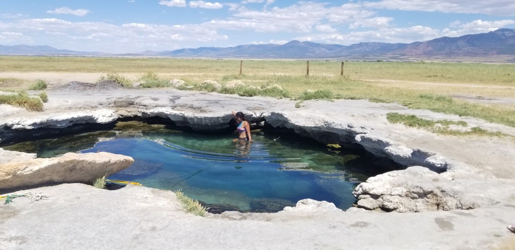 Two hours away from salt Lake City on private property open to the public, you will find Meadow Hot Springs. Getting here can be a little rocky, and what I mean by that is I learned that in Utah, a jeep, SUV, or any four-wheel drive is necessary, if not a must! I always get the economy car, so while getting to the hot spring destination, I had to go as slow as 5- 10 miles per hour due to the rocks and holes you will find along the way. Keep driving; you will see plenty of dirt; you might even feel lost, but the GPS will find it.