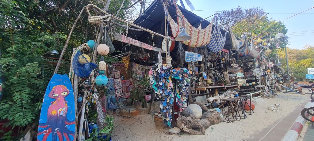 One of the island’s hidden treasures is Klom Klom Kohlarn. This bar, ingeniously designed from items washed up on Ko-Lan, offers a unique experience. Savor a drink, marvel at the bar’s artistic design, and, if you’re fortunate, catch a live musical performance.